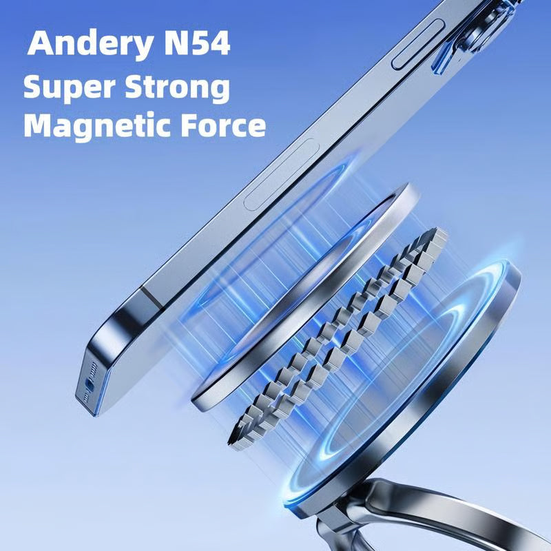 AJUSTABLE DE DOBLE EJE 360° Y 180° : Este soporte magnético para teléfono con ventosa cuenta con un brazo metálico plegable de doble eje con forma de anillo y ajuste de 180 grados, y una base giratoria de 360 grados, lo que le permite ajustarlo con flexibilidad al ángulo deseado y fijarlo firmemente. Pruebas exhaustivas confirman su excelente estabilidad. Su innovador diseño plegable reduce su tamaño un 50 % cuando no está en uso, manteniendo su espacio de trabajo limpio y ordenado.